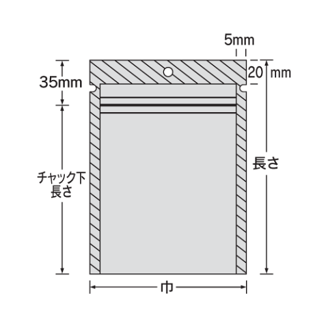 ●シール幅は、両サイド5mm、上部20mmの三方チャック袋です。