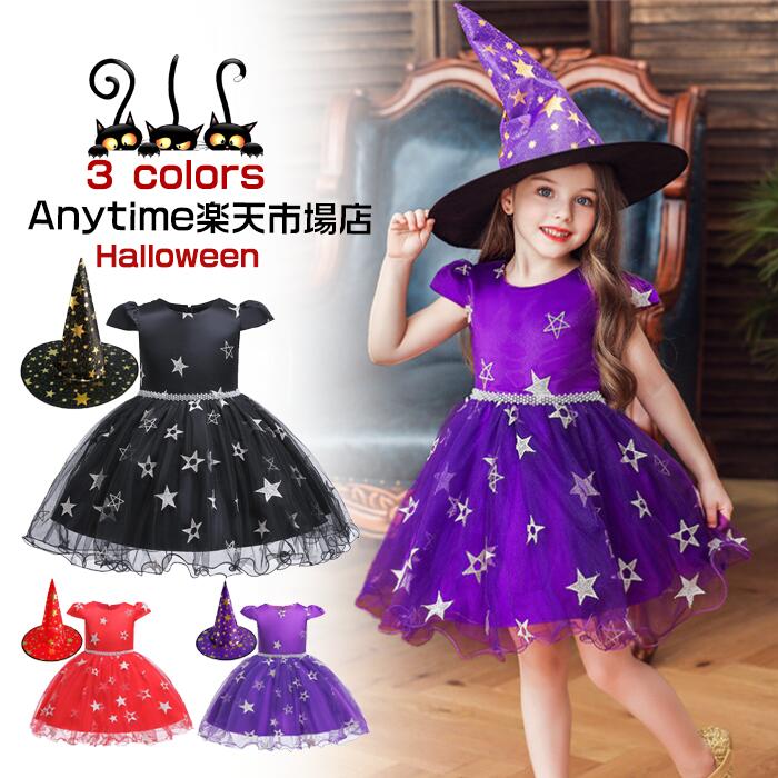 ハロウィン 子供ドレス チュール クリスマス コスプレ 衣装 キッズ 子供 魔女 ウィッチ 女の子 コスチューム 仮装 変装 パーティー イベント用品 ハロウィン 衣装 子供用 学園祭 文化祭 舞台 演出服 ステージ衣装 ガールズ 帽子付き 【Anytime】