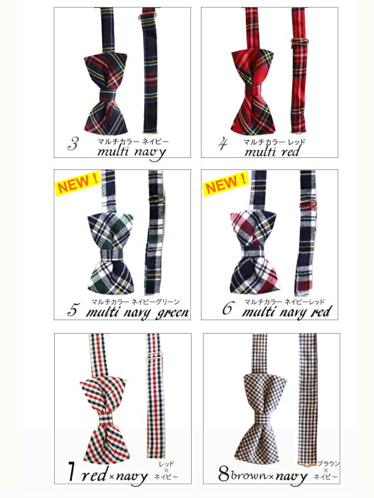 品 名 チェック柄の蝶ネクタイ 10色 サイズ [size]フリーサイズ [-] -cm [-] -cm [-] -cm [-] -cm 素 材 表地:綿65% ポレーリエステル35% 色展開 ネイビー | グリーン | マルチカラーネイビー | マルチカラーレッド | マルチネイビーグリーン |マルチネイビーレッド| レッド*ネイビー|ブラウン*ネイビー|レッドネイビー|スカイブラック 伸縮性 なし 透け感 なし 備 考 - 洗濯方法 洗濯時多少の色落ちがありますので、ほかのものと一緒に洗わないでください。