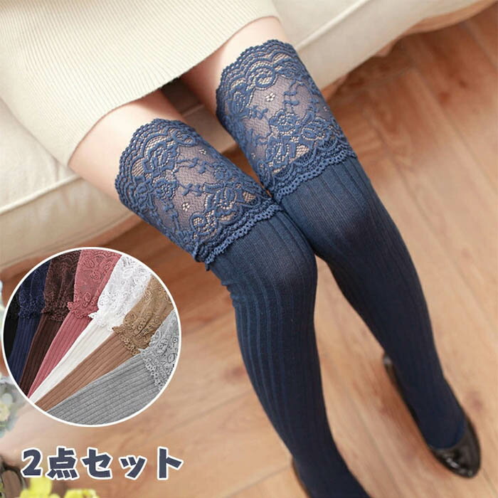 [2足セット] レディース ニーハイソックス 靴下 ソックス ニーハイ レーストップ リブ編み オーバーニーソックス サイハイソックス ニーハイ ソックス|美脚スタイル 送料無料