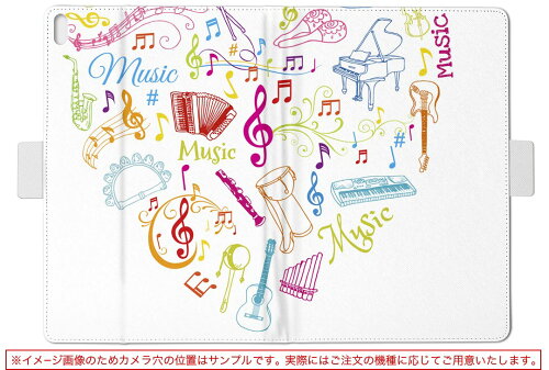 LuvPad AD100 MouseComputer マウスコンピューター ラヴパッド luvpadad100 Lサイズ 手帳型 タブレットケース カバー レザー フリップ ダイアリー 二つ折り 革 ラブリー ハート 音楽 カラフル 002503
