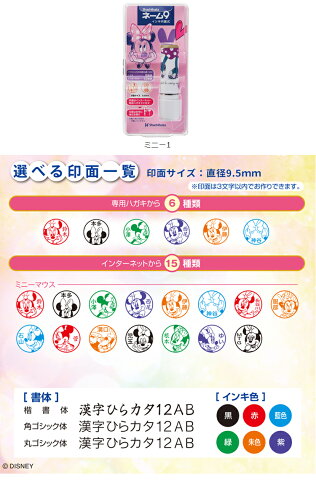 ネーム9 メールオーダー式 ●特長 ディズニーキャラクターのイラストをあしらったインキ内蔵式のネーム印「ネーム9」。