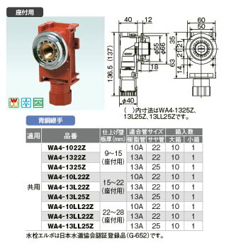 オンダ製作所【WA4-10LL22Z】A-4 水栓ジョイントボックス Rp1/2ねじ 壁板厚22〜28(座付用) 青銅継手 共用 適合管サイズ(樹脂管10A サヤ管22)