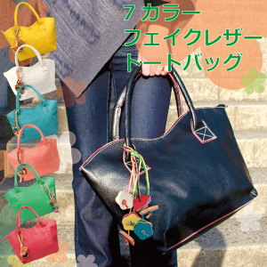 【少し訳あり 内ポケットファスナー壊れ】7カラー カラフルなフェイクレザー トートバッグ 取り外し可能フラワー付き カラフルでかわいいトート レディース バック カバン かばん 鞄 大きめ 大きい 安い ギフト プレゼント AZ-565 【あす楽対応】 父の日