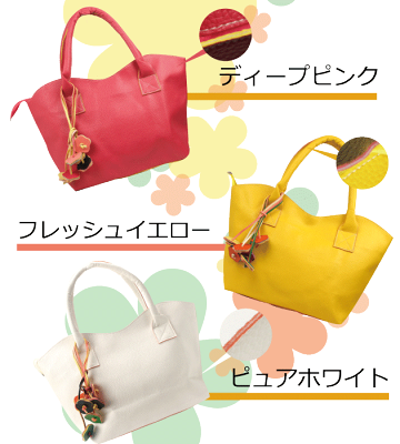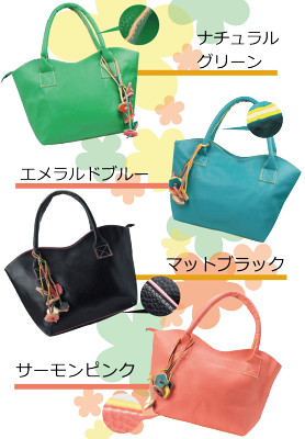 商品説明 取外し可能フラワーチャーム付き7カラーバリエーショントートバッグ カラフルなトートバッグです。