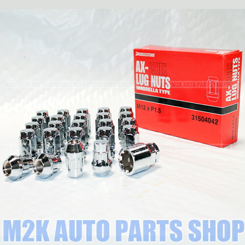 ■商品内容 商品名:汎用 袋タイプ メッキロックナット M12 P1.5 / P1.25 60度テーパー 4個 + 専用アダプター 19HEX 21HEX 1個 + BS ブリヂストン製 袋メッキナット 20個 P1.5 / P1.25 x 19HEX 【適合早見表】 M12 × P1.5 19HEX/21HEX ・・・ ホンダ車 / トヨタ車 レクサス車 ダイハツ車 マツダ車 ミツビシ車 M12 × P1.25 19HEX/21HEX ・・・ スズキ車 スバル車 / ニッサン車 ※年式/OEMにより上記メーカーでも装着できない場合ございます、 購入前に必ず装着予定車種のボルトサイズを確認ください。
