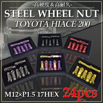 【即日発送】ハイエース 200系 専用 スチール ホイールナット クロモリ 貫通 24個 5色選択 P1.5 カラーナット 17HEX 48mm ホイール ロングナット ロング ラグナット カスタムナット レーシングナット トヨタ JDM USDM【送料無料】