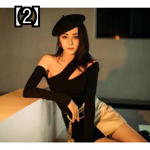 ワンショルダー トップス レディース 長袖 肩だし かわいい 春秋 セクシー おしゃれ カーキ 黒
