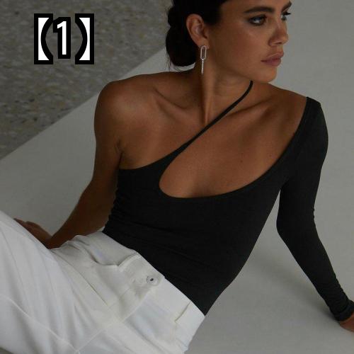 肩だし トップス レディース 長袖 春夏 ワンショルダー スリム タイト 無地 シンプル セクシー 黒