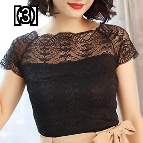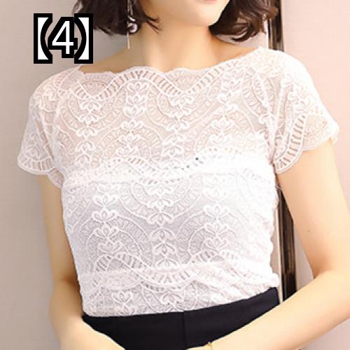 トップス 半袖 レディース 夏 おしゃれ 薄手 レース 大きいサイズ かわいい カジュアル 韓国 白 黒 プルオーバー 通気性 柔らかい しわ防止 きれいめ 大人かわいい 肩だし ショート丈