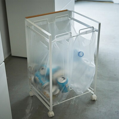 【目隠し分別ダストワゴン トスカ 2分別】 レジ袋 ごみ箱 ダストボックス ホワイト yamazaki キャスター付き 瓶 資源ゴミ ゴミ箱 ゴミ袋 山崎実業 tosca 4779 ペットボトル おしゃれ スチール 分別 ゴミ袋スタンド 缶 天然木 引っ掛け キッチン 【送料無料 ポイント10倍】