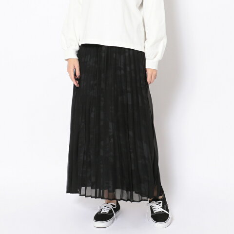 カモ柄のスカートの上にシフォン素材のプリーツを重ねた、ブランドらしい1枚。