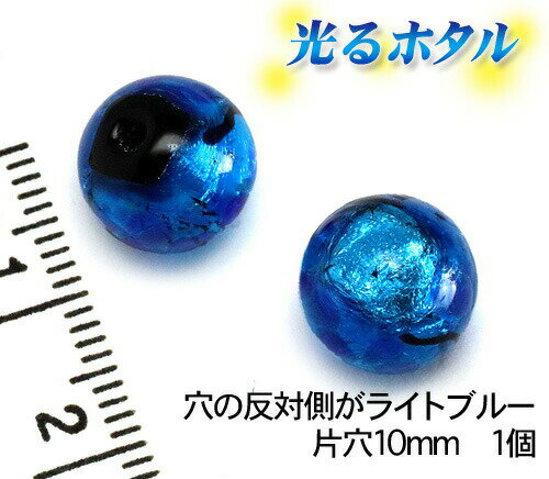 訳あり 純銀箔入り【蓄光ほたる10mm片穴】暗闇で光る蛍 ブルー 片穴 10mm玉 1個 1穴 蓄光 ほたる石 沖縄ホタルガラス ホタルビーズ ホタル石 トンボ玉 蓄光蛍 光るほたる