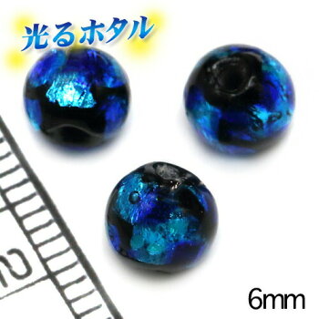 楽天1位獲得!! 純銀箔入り【蓄光ほたる6mm】暗闇で光る蛍 ブルー 1個 2穴 蓄光 ほたる 沖縄ホタルガラス ホタルビーズ ホタル石 トンボ玉 蓄光蛍 光るほたる