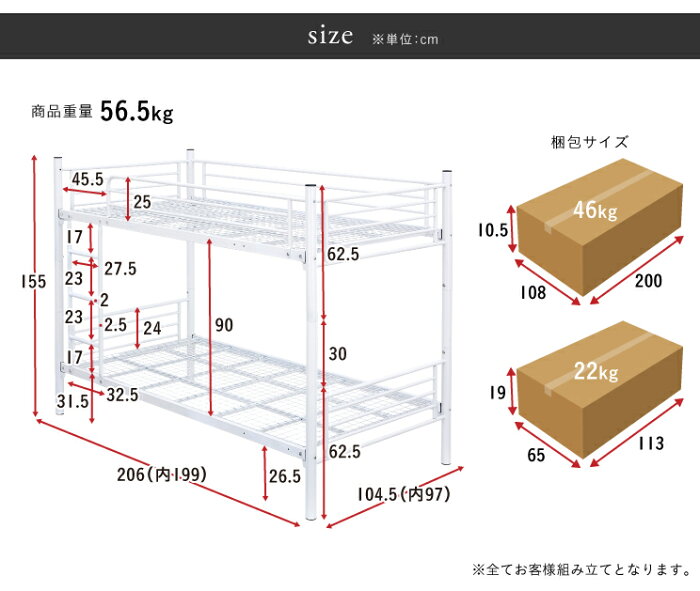 【割引クーポン配布中】【床板補強UP/分割可能】パイプ二段ベッドIII ホワイト パイプ2段ベッド 分割タイプ スチールパイプ パイプベッド 二段ベッド 二段ベット 2段ベット ベッド 子供部屋 おしゃれ (大型)