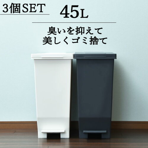 ゴミ箱 45L袋可 おしゃれ 45リットル袋可 密閉 キッチン 生ごみ 45リットル ペダル ペット トイレ 赤ちゃん オムツ ふた付き 幅 30cm 袋 見えない ダストボックス 日本 シンプル インテリア雑貨 北欧 ホワイト ブラック 白 黒(エバンMP 密閉ペダルペール 45L 3個セット)