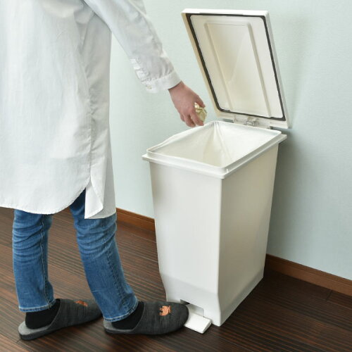 商品詳細 ■サイズ 約幅28.4cm×奥行46.2cm×高さ58.7cm フタを開けたときの高さ:102cm ■素材 フタ本体、袋止め、ペダル:ポリプロピレン ペダルロット:スチール パッキン:ポリエチレン ■重量:約2,280g ■容量:45L ■ゴミ袋対応サイズ:45L以上 ■注意事項 ペダルを踏んだ際、フタが90度に開ききるわけではありません。